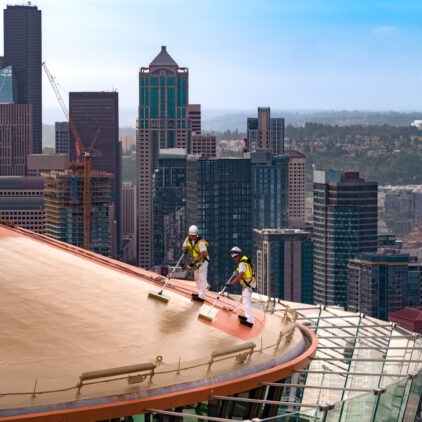 Long Painting had the honor of painting the iconic symbol of Seattle. For the 60th anniversary of the Space Needle, we painted it to the original color of Galaxy Gold and after a year of celebration, repainted it back to the normal white color. The painting of the Space Needle had a lot of challenges with weather, press coverage, and ceremonial painting, plus safety and fall protection, and Long Painting performed flawlessly. Long Painting is proud to have been chosen to do such important work on the most recognized feature of the Seattle skyline.